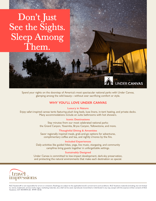 Spend your nights on the doorstep of America’s most spectacular national parks with Under Canvas, glamping among the wild beauty—without ever sacrificing comfort or style.